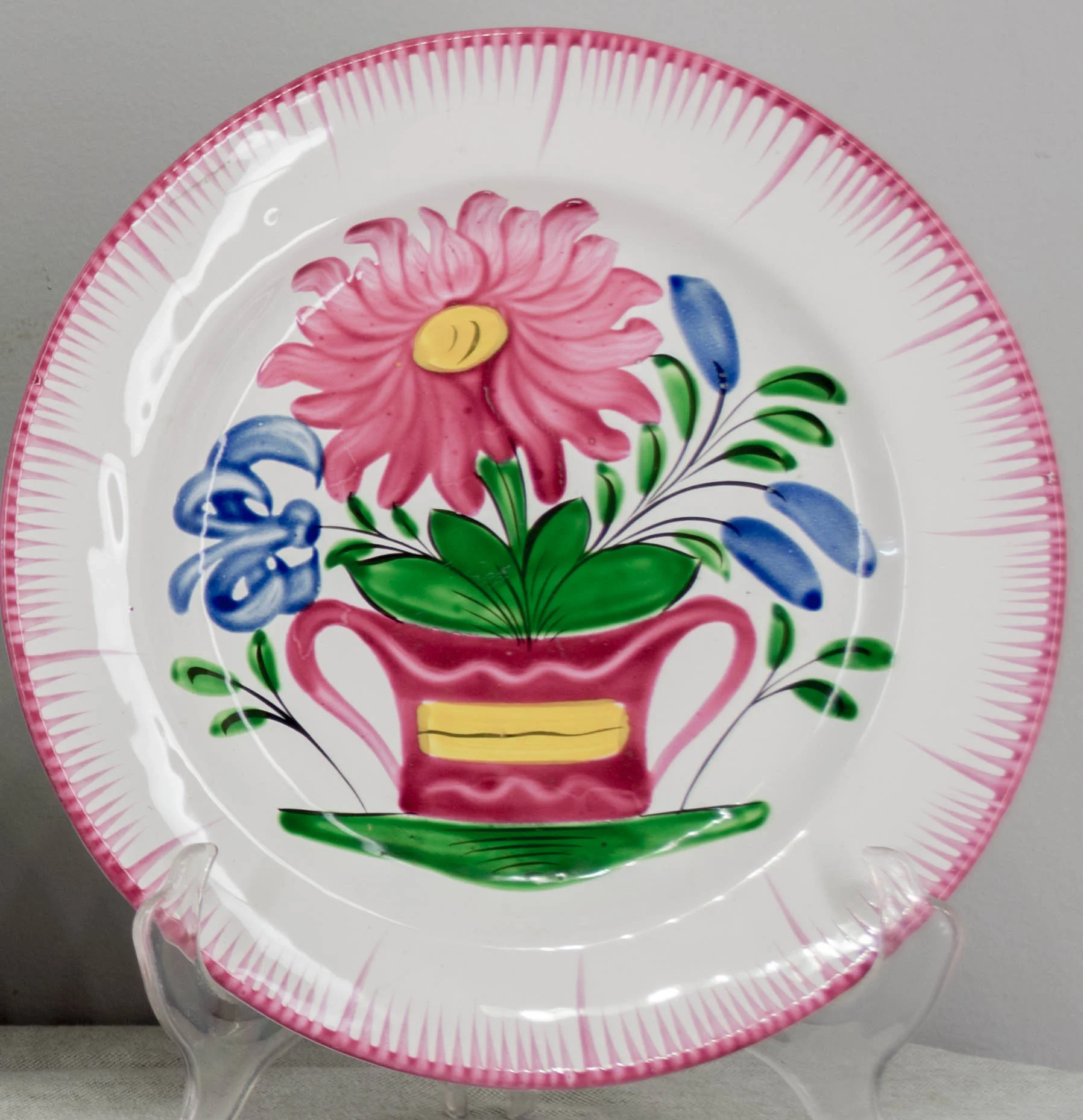 Set of 3 French Faience plates from St. Clement with typical decor of the East of France. Circa 1880. 9" diameter.